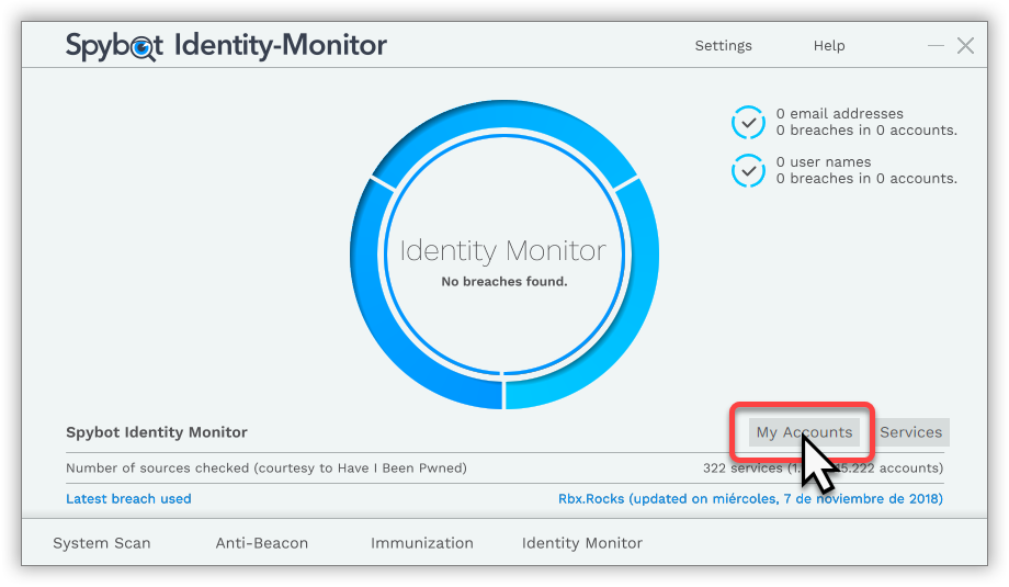 Spybot Identity Monitor es gratuita y aunque solo está disponible en inglés, es muy intuitiva y no representará mayor problema manejarlo y entenderlo. Está disponible como aplicación estándar o como APP de la tienda de Windows.